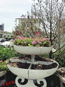 喝完的可乐瓶 攒56个倒插土中围成花坛 比红砖水泥砌的更吸睛 胶带